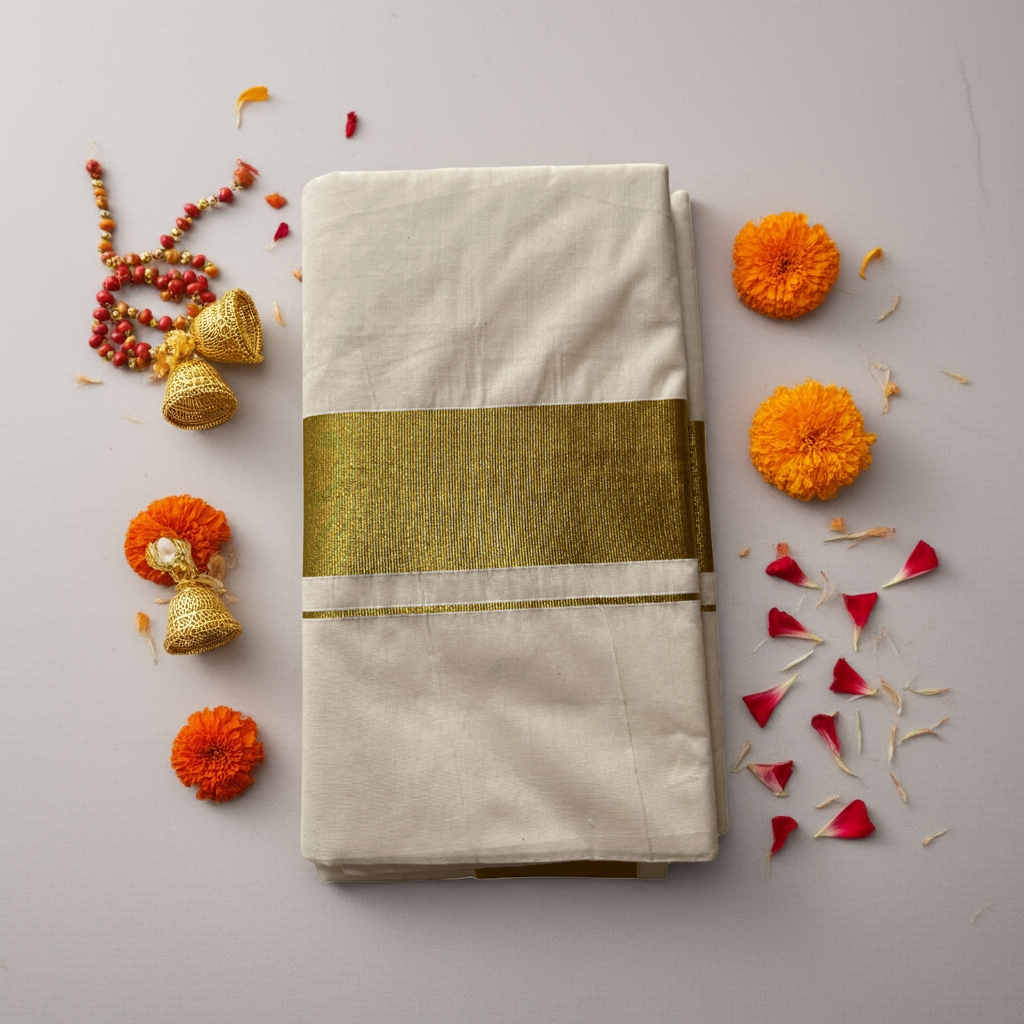 A must-have Onam saree, this design is a true symbol of Kerala’s cultural heritage and festive charm.